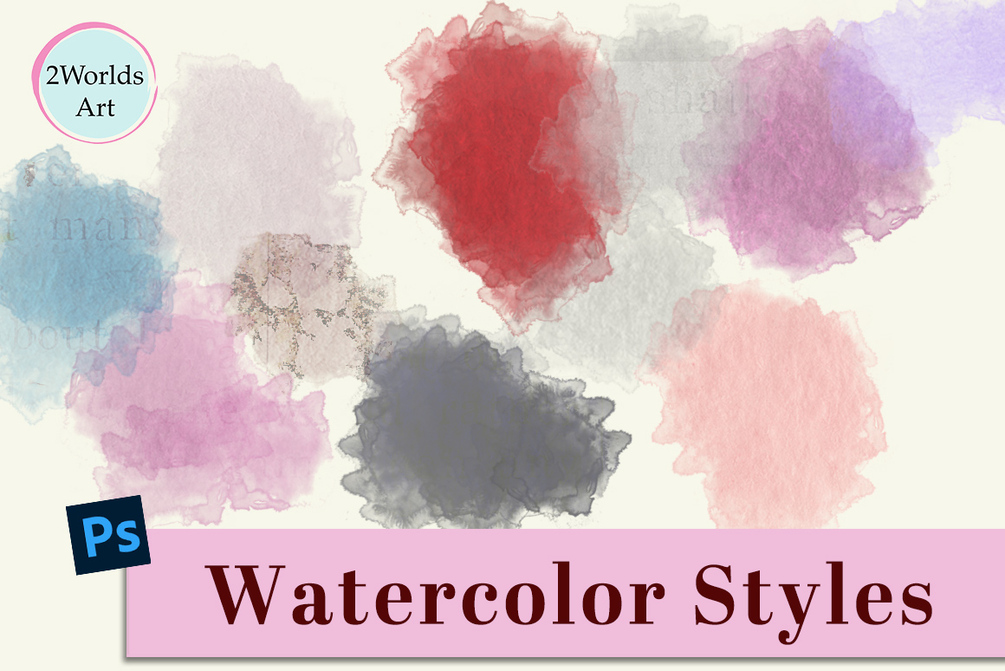 Enhance your designs with this Photoshop Watercolor Styles Set. Includes 8 unique styles and 3 color variants with blend modes for a variety of artistic effects.