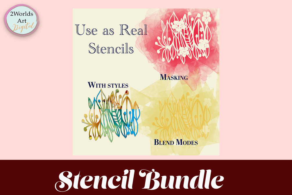 In this bundle, you will get 31 stencils to create realistic stencil work on your mixed media pages, you can also use them as masks.This can be also used for digital scrapbooking layouts.