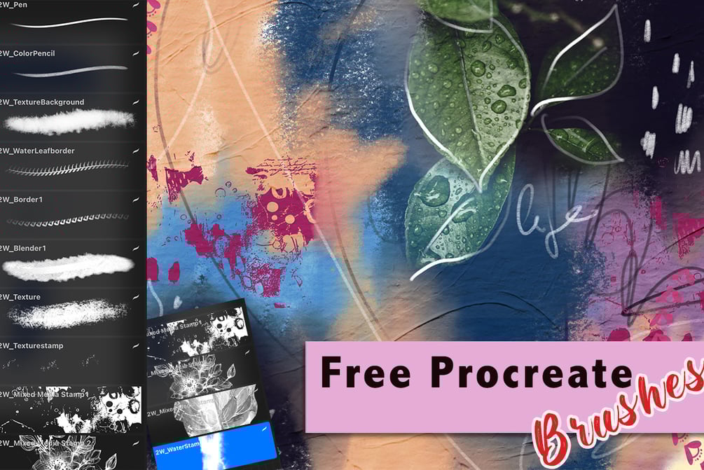 Free Set of 12 brushes procreate brushes for an intro to procreate mixed media creations.